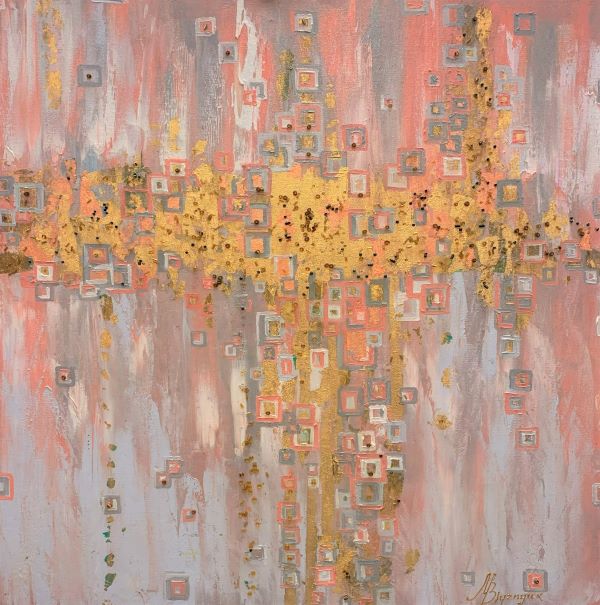 Oil Painting Canvas, Gold Leaves, 30×30 in